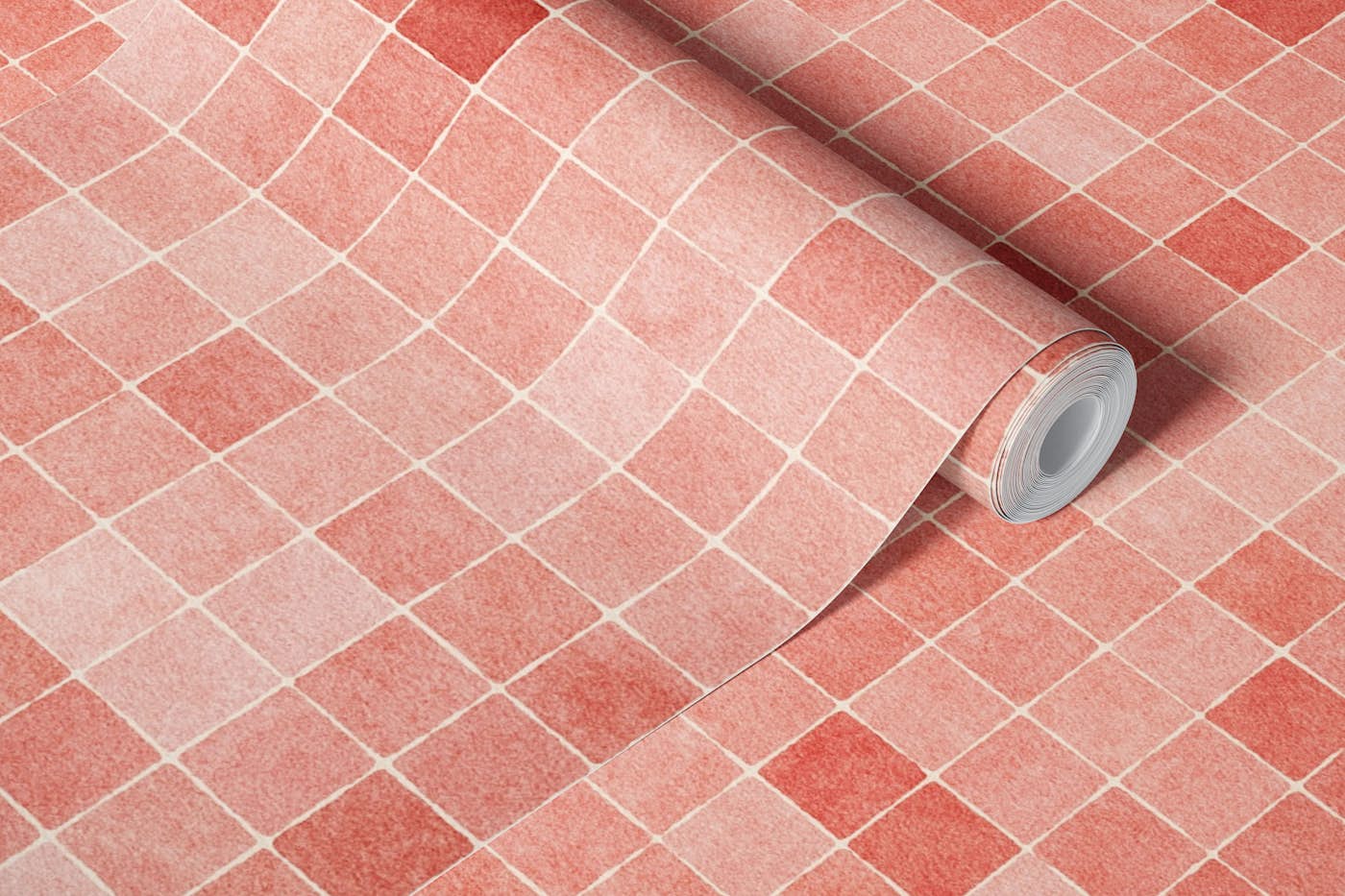 This pattern features a grid of textured square tiles in varying shades of red and pink. The warm, inviting tones and subtle texture create a charming, cozy feel, making it perfect for home decor, furniture upholstery, or stylish fashion accessories.