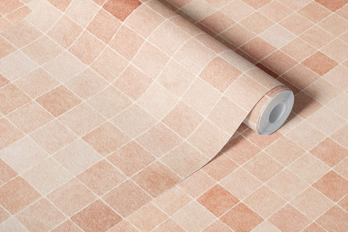 This pattern features a grid of textured square tiles in varying shades of peach and orange. The soft, pastel tones and subtle texture create a delicate, serene feel, ideal for understated home decor, elegant furniture, or fashionable accessories.