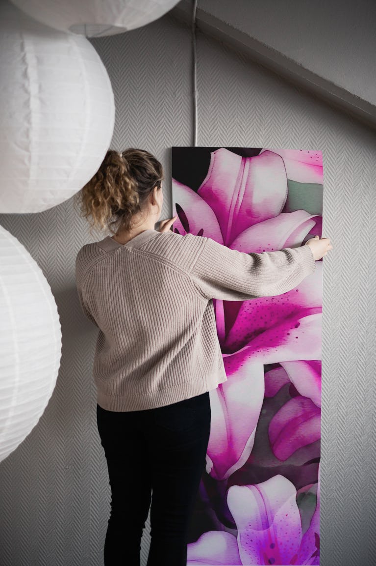 Vous serez surpris de la simplicité du montage Moody Lillies Abstract Watercolor Floral papiers peint