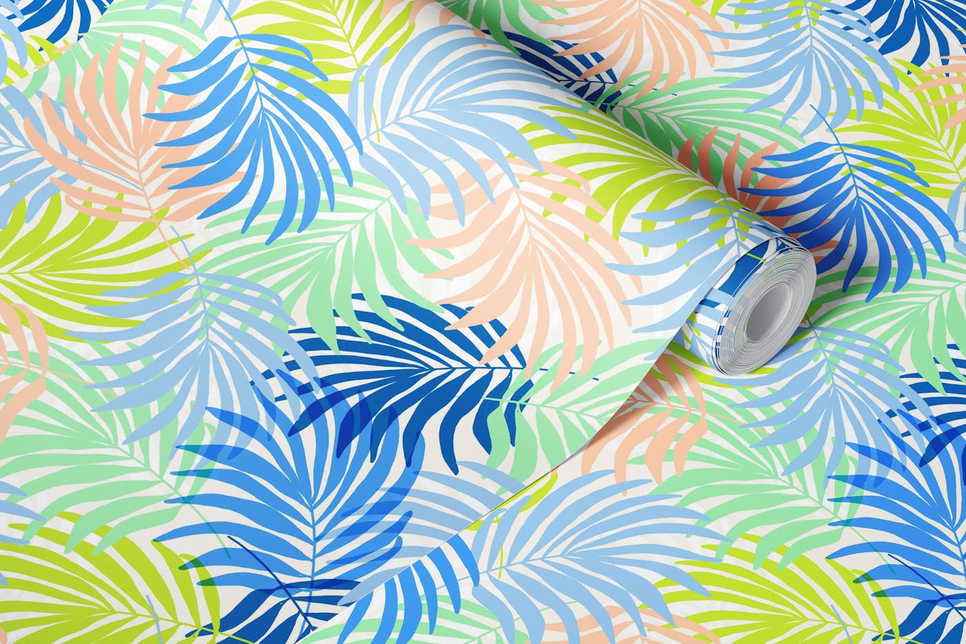 Colourful tropical palm leaf pattern in a mix of bright happy hues.