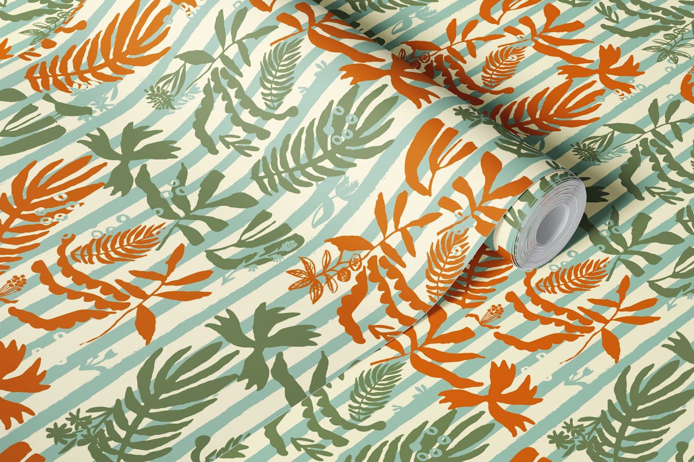 Stripete treslag, håndtegnede geometriske abstrakte former, moderne tapet i tropisk jungel.