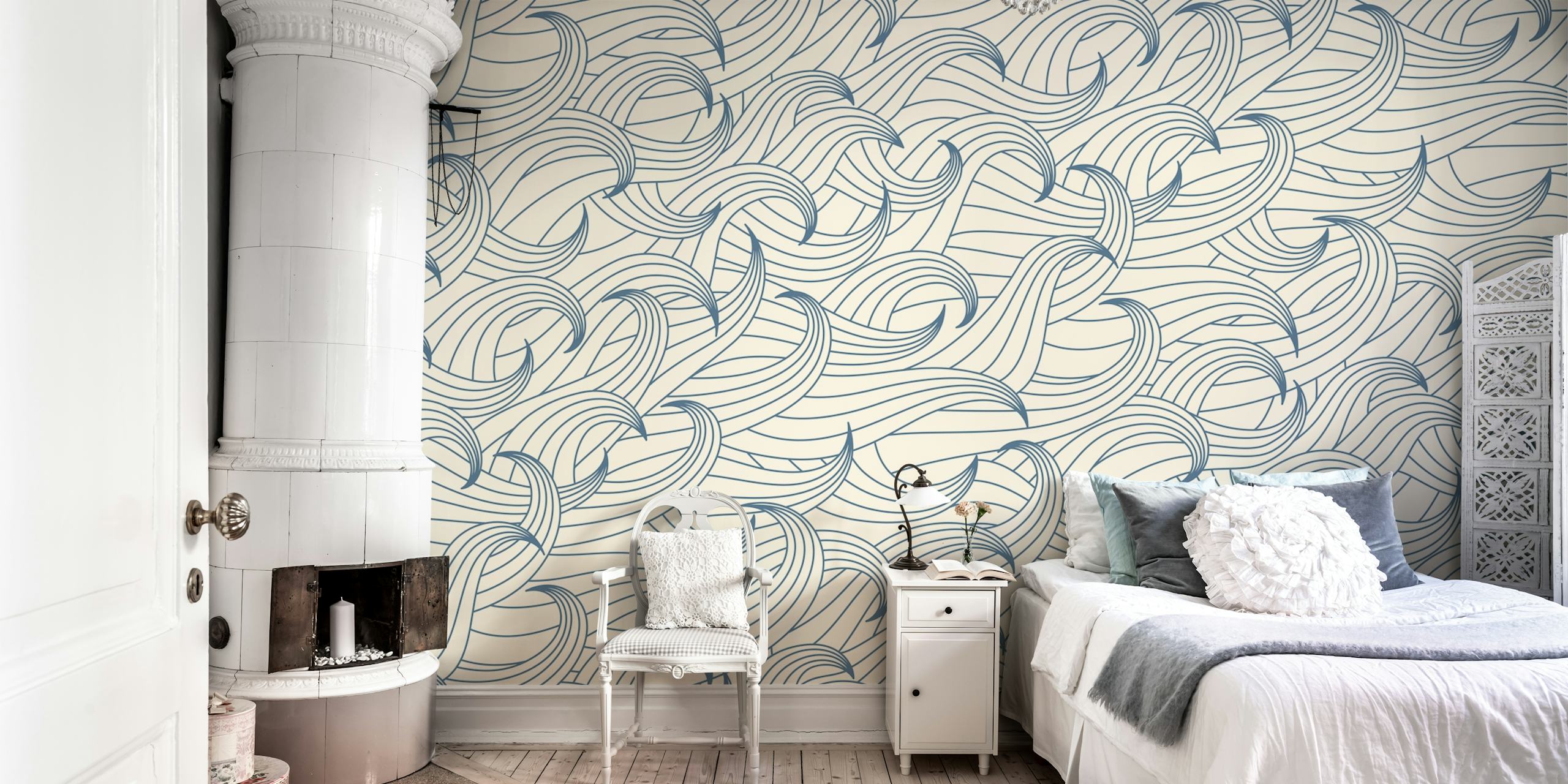 Waves coastal chic offwhite blue tapete kann für Ihre Wand angepasst werden. Sie bestimmen die genaue Größe und wie Sie es zuschneiden möchten.