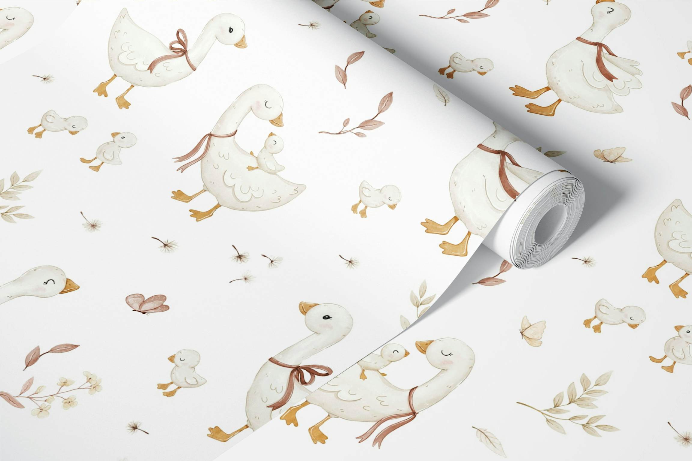 Bring a touch of nature and charm to your home with the Petal Geese design. This delightful wallpaper features graceful geese and gentle botanical elements, creating a serene and inviting atmosphere. Ideal for nurseries or any room needing a soft, whimsical touch, this pattern adds warmth and personality to your space. The neutral tones ensure versatility, allowing it to blend easily with any decor style. Transform your walls with this unique design and enjoy the tranquility it brings.