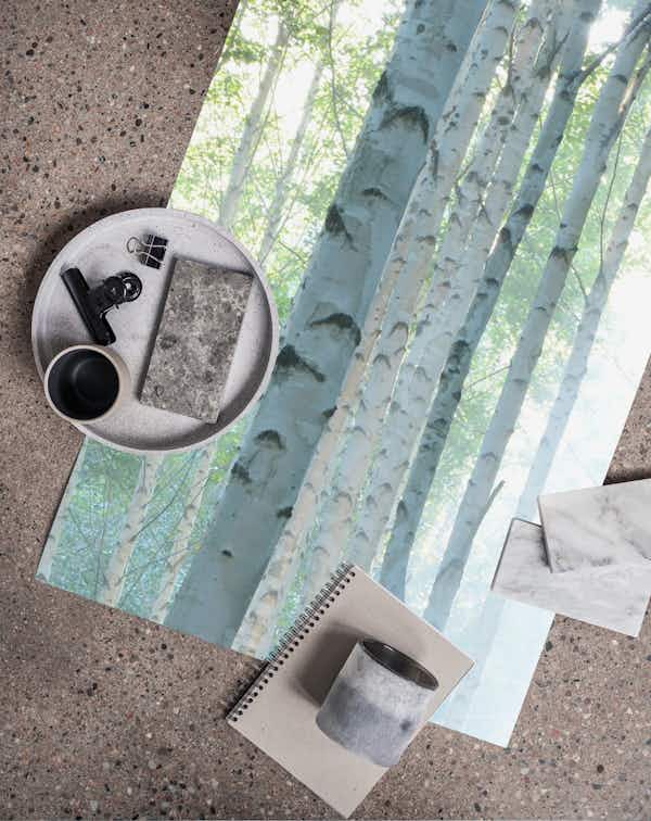 Birch tree jungle wallpaper is made of non-woven material. Each panel is 50 cm (19.7 inches) wide
