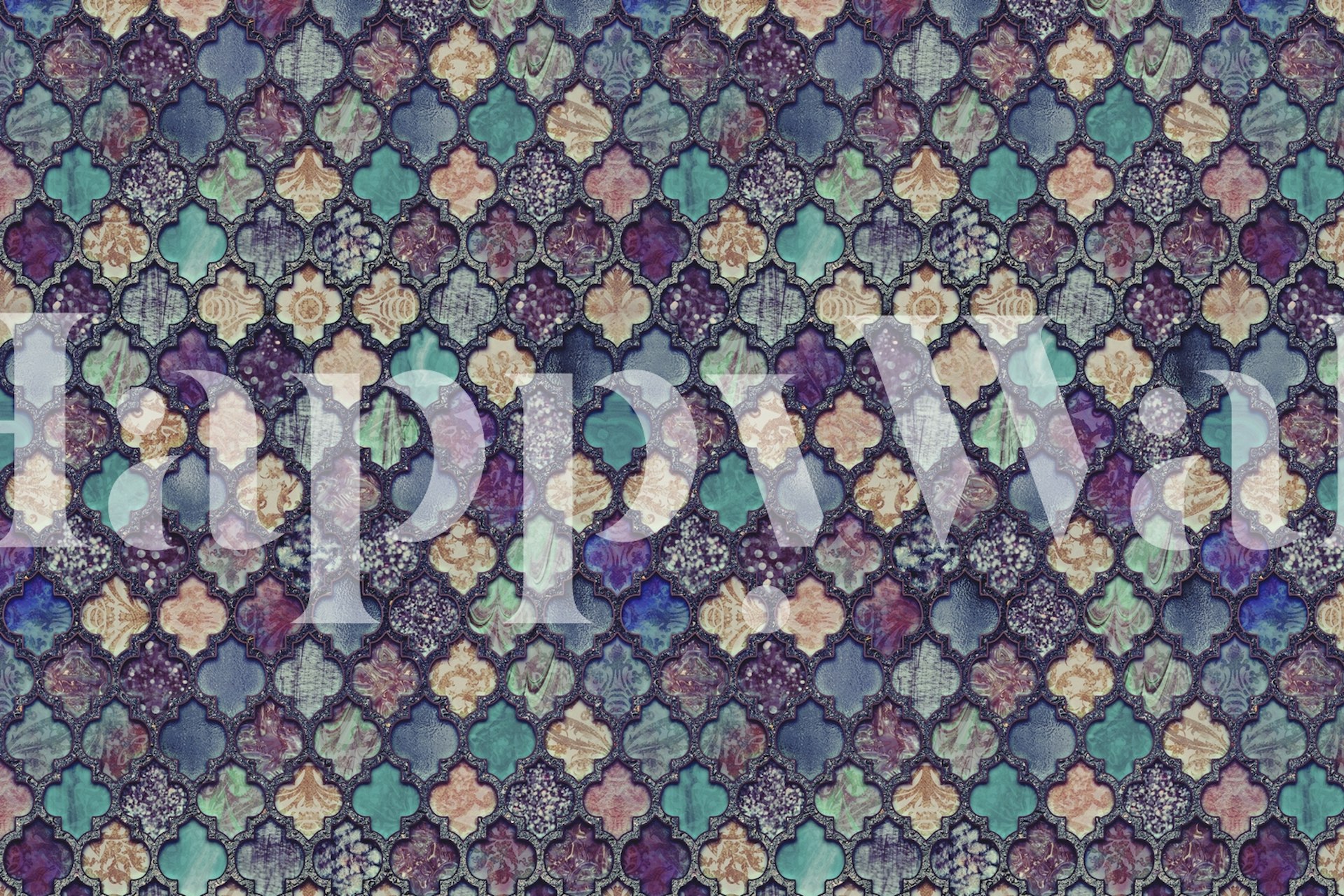Moroccan Tiles Teal Purple wallpaper can be customized for your wall. You decide the exact size and how you want to crop it.