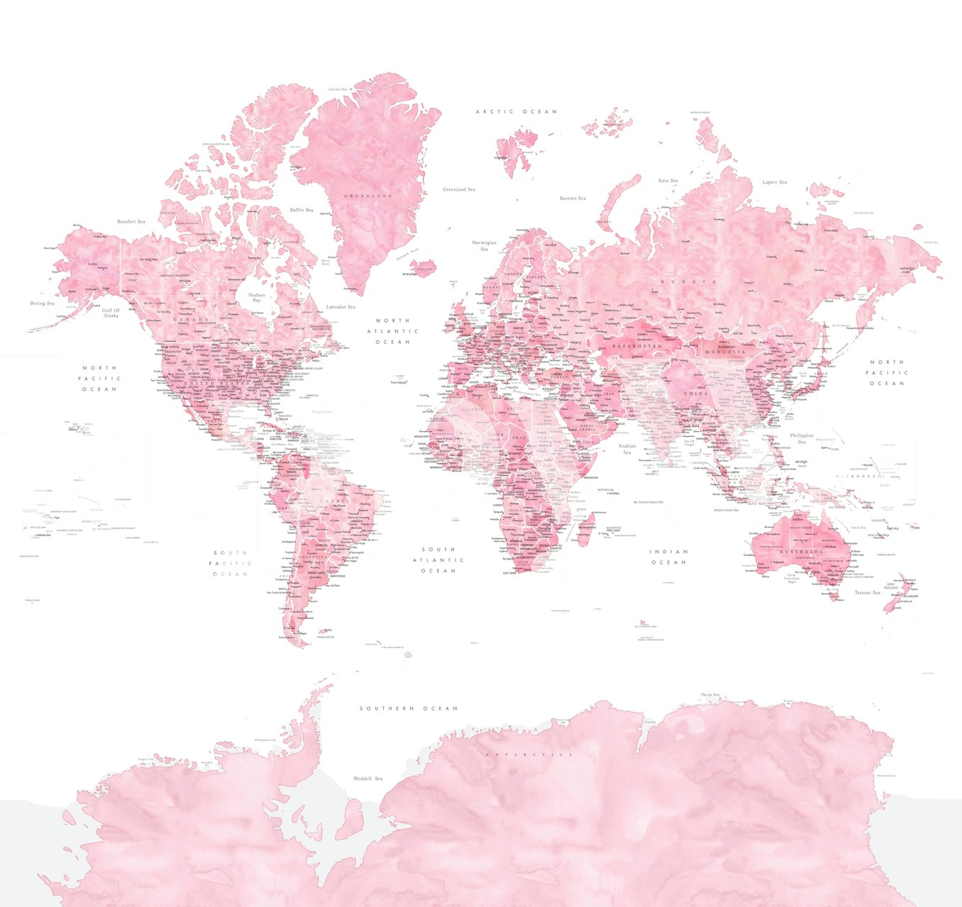 World map Damla Antarctica wallpaper can be customized for your wall. You decide the exact size and how you want to crop it.