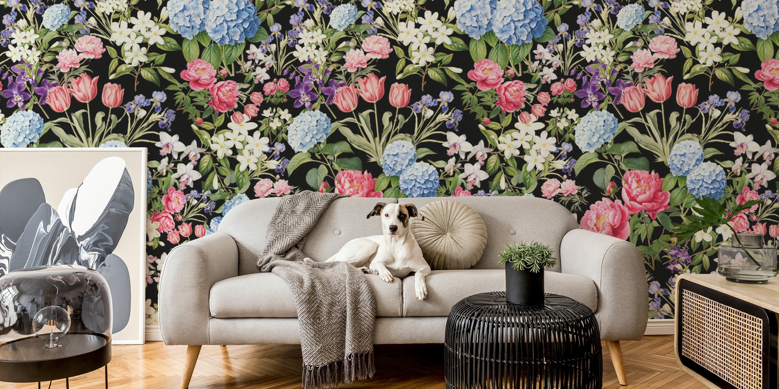 Transformujte svůj prostor tímto živým květinovým designem, který přináší krásu přírody do interiéru. S ohromující škálou barevných květin na výrazném černém pozadí přidává tato tapeta eleganci a kouzlo jakékoli místnosti. Ideální pro ty, kteří milují odvážnou a uměleckou dekoraci, vytváří fascinující ohnisko. Vneste do svého domova nádech klidu a stylu a proměňte jej v pravý květinový ráj, který povznáší a inspiruje.