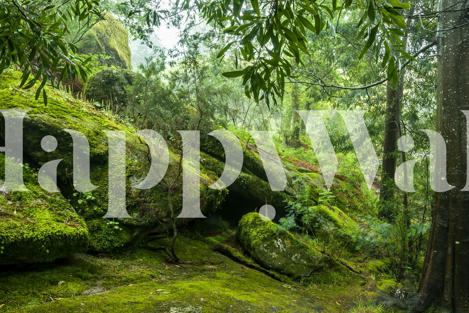 Přeměňte jakoukoli místnost na klidné lesní útočiště s tímto designem inspirovaným přírodou. Tento tapet s bujným zeleným mechem pokrývajícím obrovské kameny přináší klidnou krásu přírody do vašeho domova. Ideální pro milovníky přírody, kteří hledají uklidňující a osvěžující atmosféru, vytváří pozorné místo pro odpočinek a přemýšlení. Zažijte harmonické spojení přírodních textur a živé zeleně, které zachycuje podstatu klidného lesního prostředí. Ideální pro ložnice, obývací pokoje nebo jakékoli místo, které potřebuje dotek přirozené elegance.