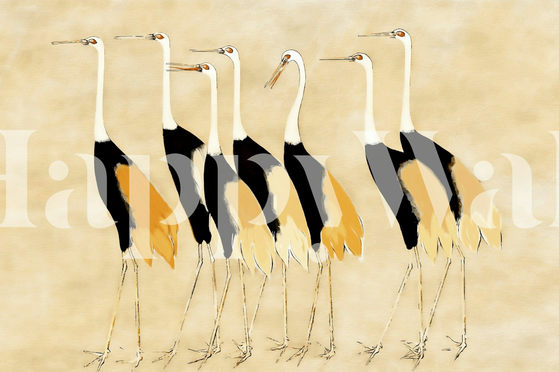 Pastel Orange Peach Beige Crane Birds tapete kann für Ihre Wand angepasst werden. Sie bestimmen die genaue Größe und wie Sie es zuschneiden möchten.