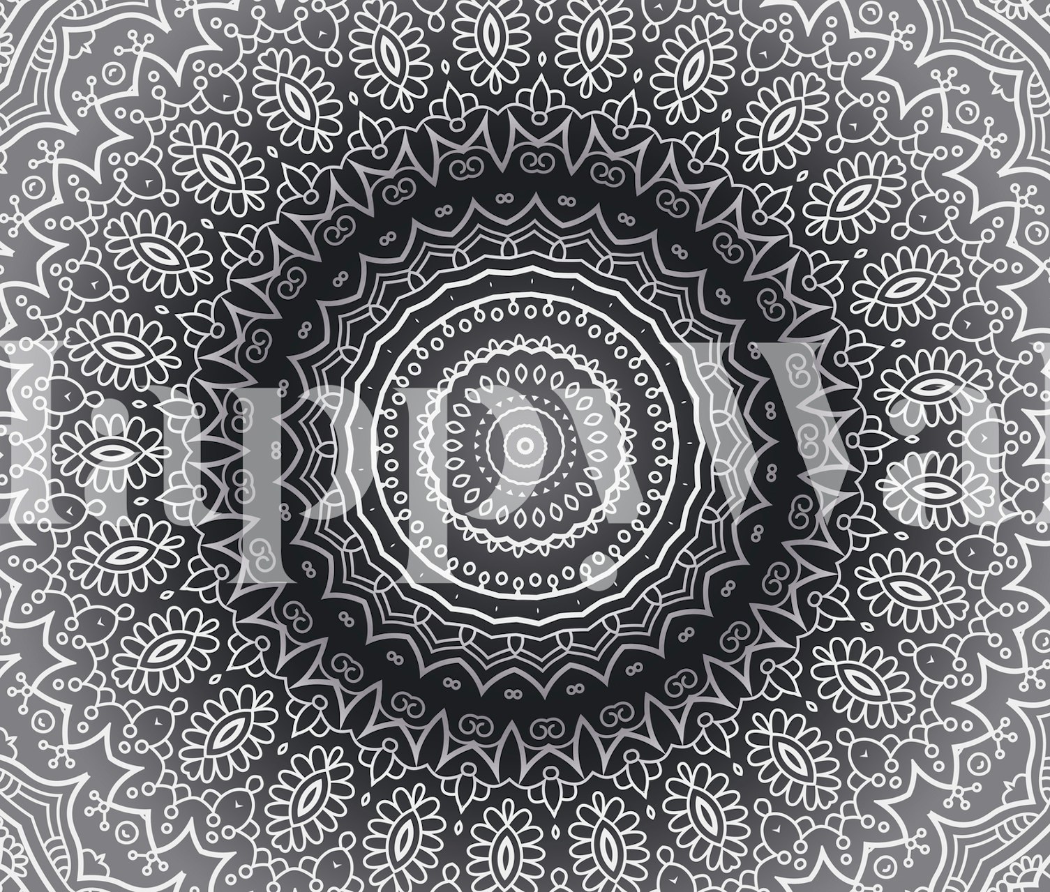 Grey Mandala papel pintado se puede personalizar para su pared. Tú decides el tamaño exacto y cómo quieres recortarlo.