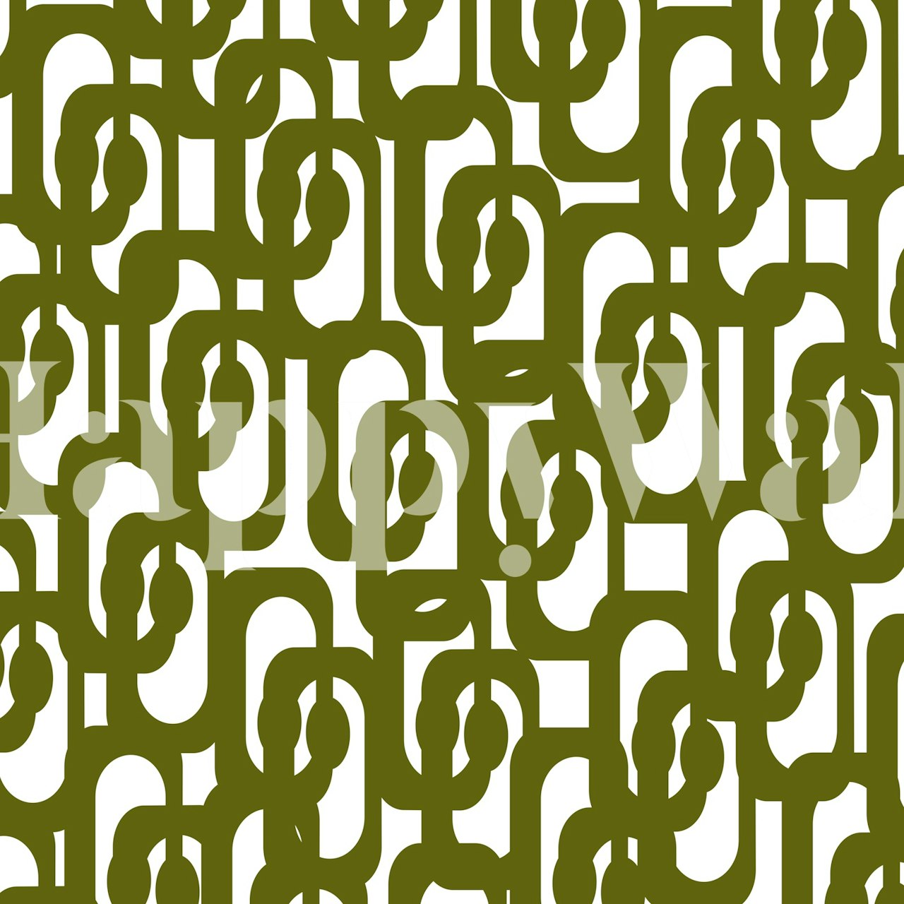 Mid Century Modern Loops Olive Green papel pintado está hecho de material no tejido. Cada panel mide 50 cm de ancho