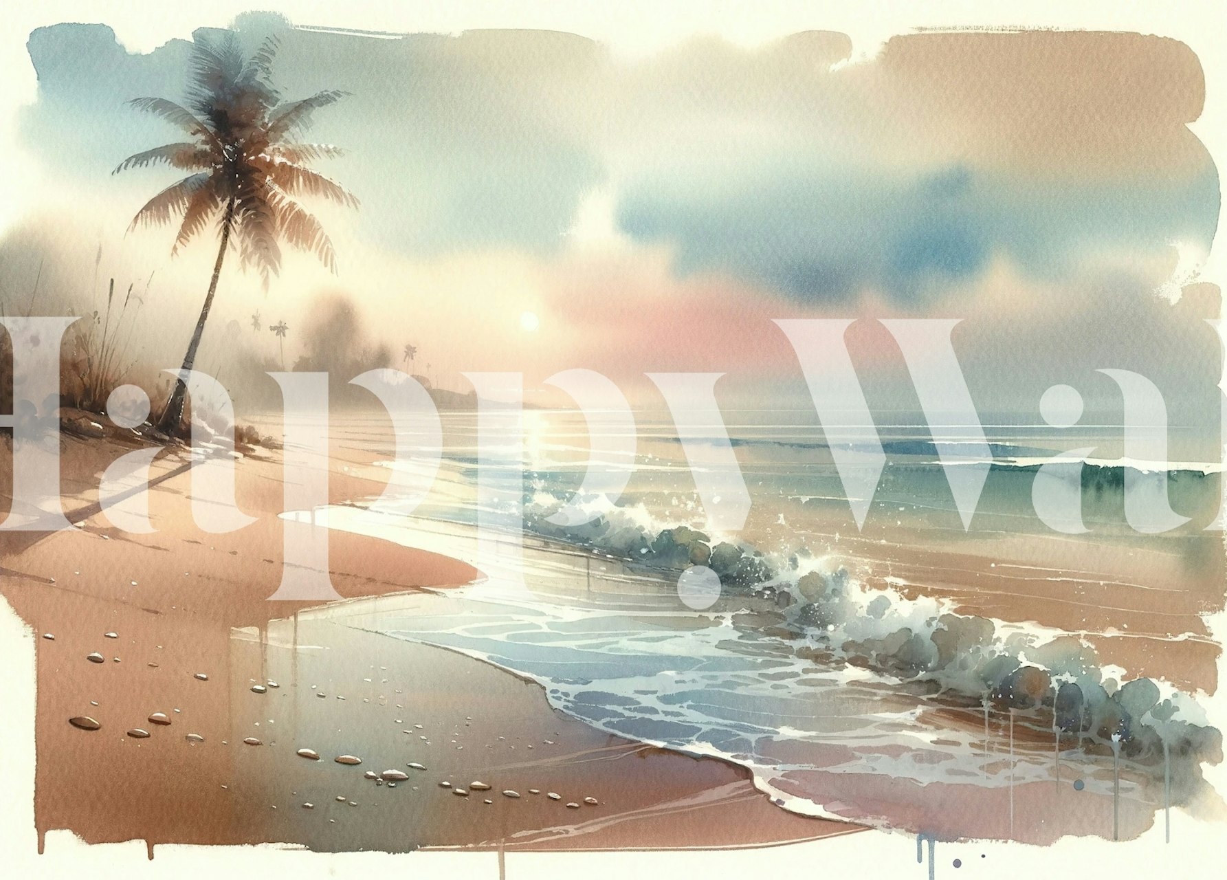 Discover tranquility every day with the Calm Tropical Beach Sunrise wallpaper. This exquisite piece perfectly captures the breathtaking allure of a serene seascape, adding a peaceful ambiance to any room. A blend of sunrise hues creates a soothing sunset panorama that will transform your interior into a coastal retreat. This watercolour wallpaper depicts the gentle wave lapping on the beach while the first light of dawn breaks, lending your space a touch of natural beauty. The symphony of soft colors used in depicting this tropical escape guarantees an impressive display. From its tranquil sky to the relaxed coastal waters, every detailed element in this wallpaper exudes calm and serenity. Experience a beautiful tropical sunrise every day without leaving the comfort of your home.