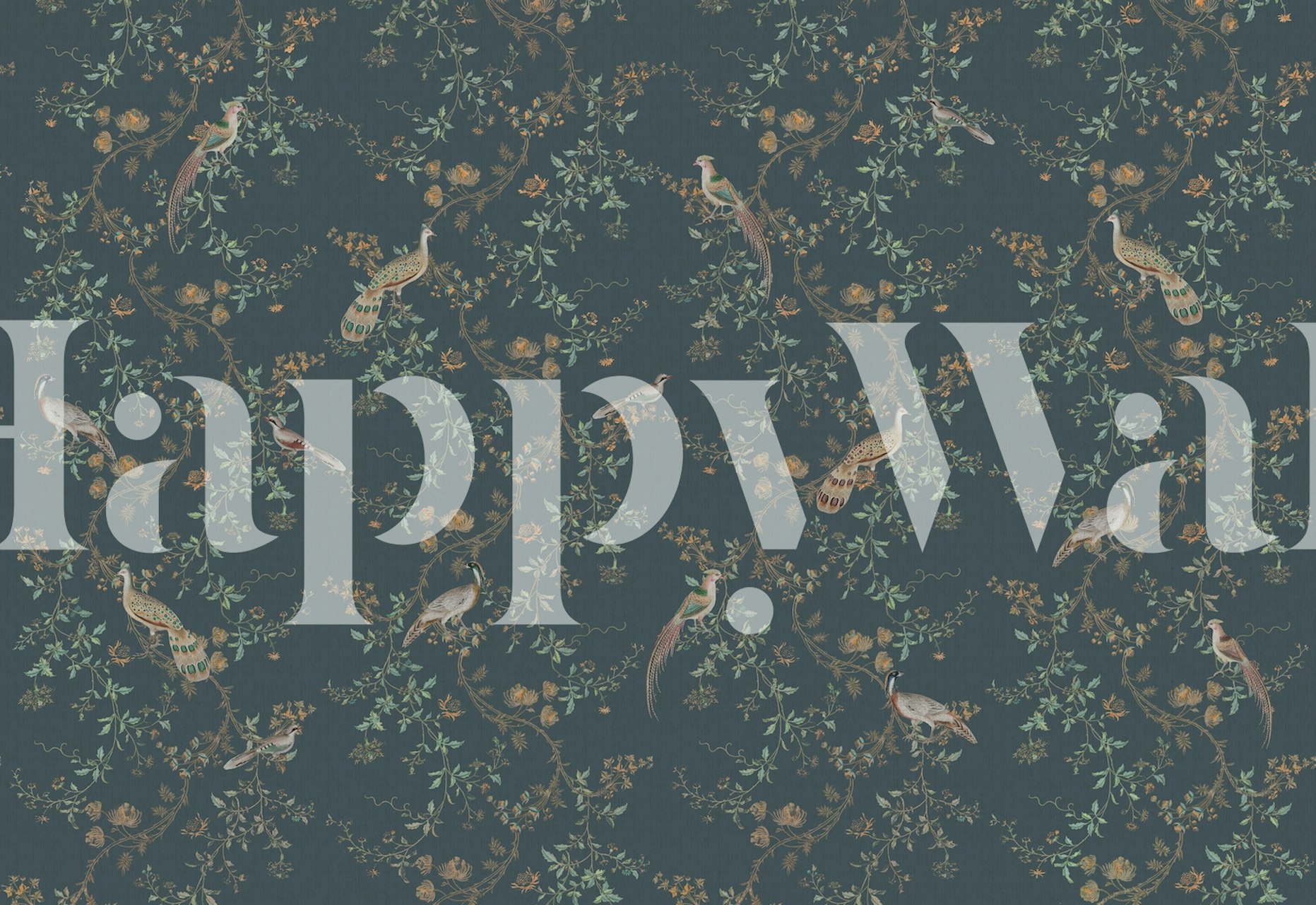 Chinoiserie birds & flowers tree - dark green papiers peint