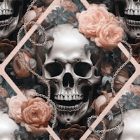 Captivating gothic design that invites you into a realm of dark beauty and intrigue. This design weaves together the enigmatic allure of skulls and the timeless elegance of roses, creating a trending tapestry that balances the macabre with the delicate. The juxtaposition of skulls and roses, symbols of mortality and beauty, creates a visual narrative that transcends conventional aesthetics. The pattern evokes a sense of mystery and depth, inviting you to explore the intricate details that dance across the pattern.