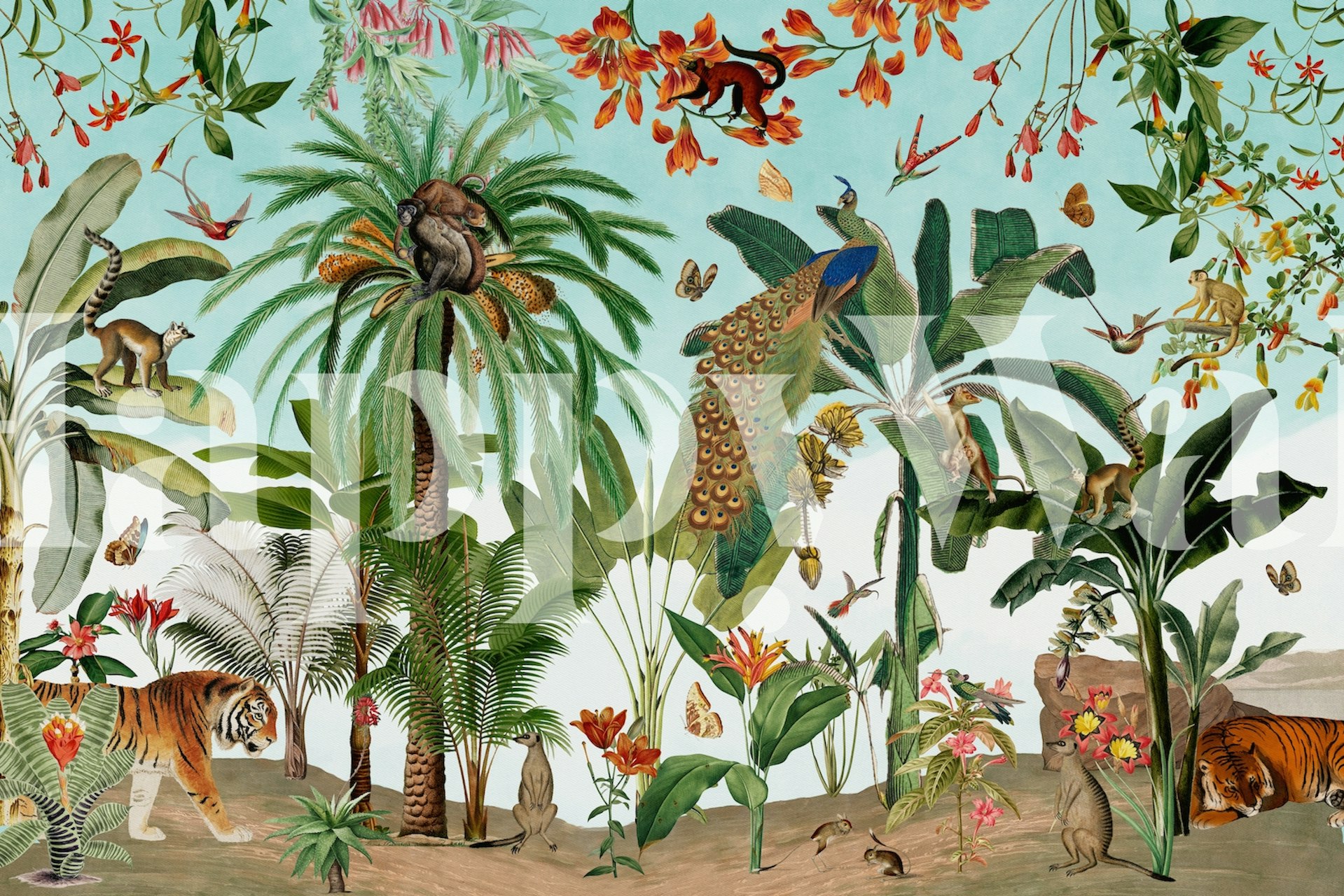 Vintage Tropical Jungle Paradise papiers peint peut être personnalisé pour votre mur. Vous décidez de la taille exacte et de la manière dont vous souhaitez la recadrer.