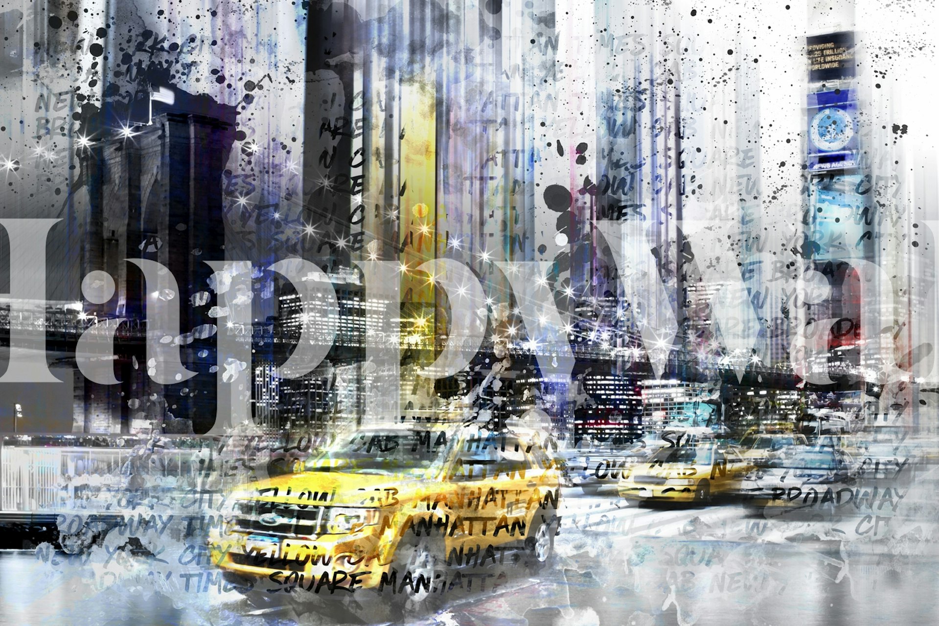 Vrlo moderna i dekorativna COLLAGE s tipografskim elementima, noćni pogled na Brooklyn Bridge i Manhattan skyline, kao i promet na Times Squareu. Times Square je središte Broadwayskog kazališnog okruga.