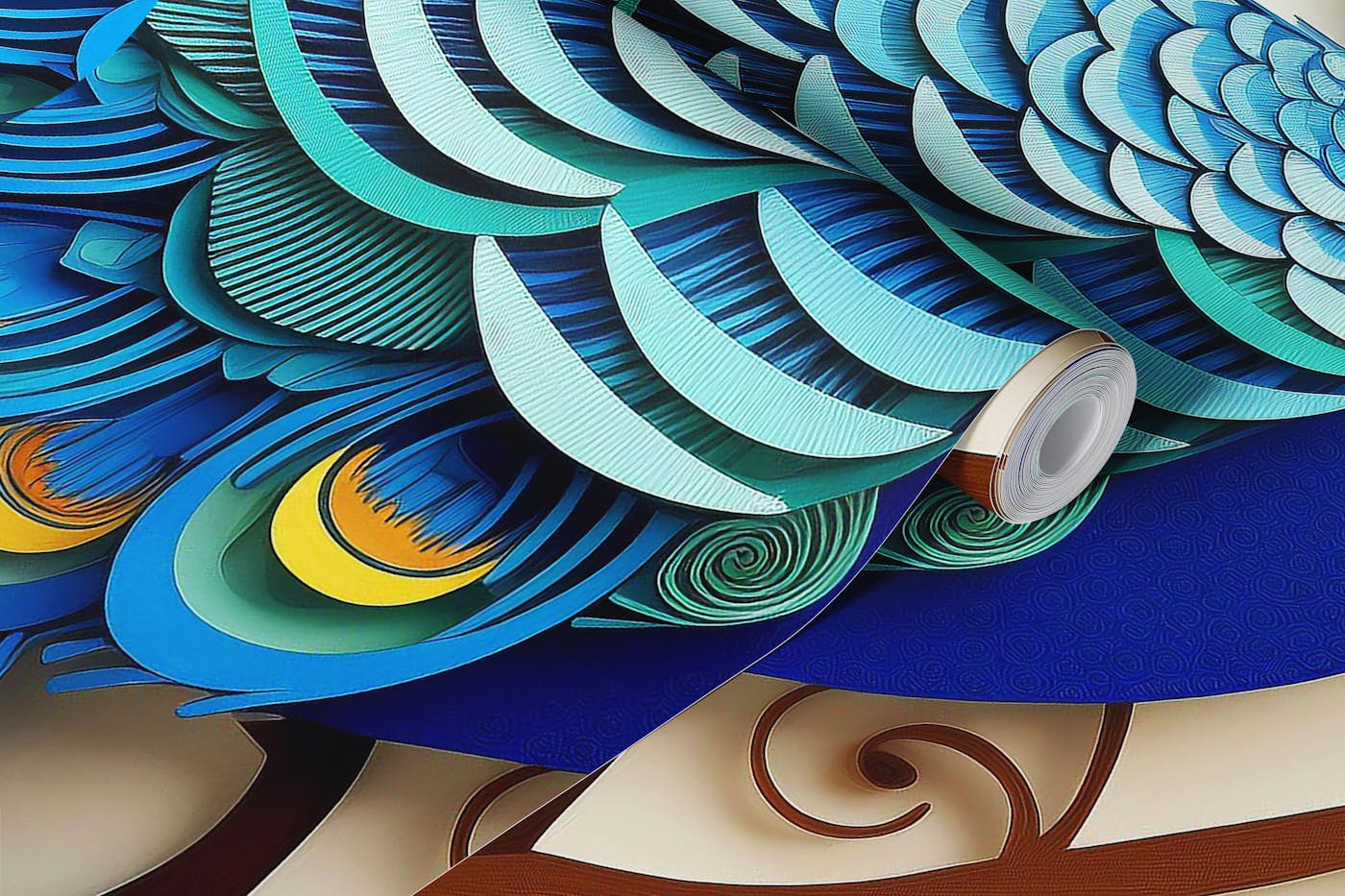 Infuse a touch of elegance into your home with Blue Peacock Serenity. This captivating papercut design captures the majestic beauty of a peacock, adorned in vibrant blues and intricate details, harmonized by lush, swirling foliage. Perfect for creating a peaceful atmosphere in any room, this stunning wallpaper brings nature-inspired art to your walls.