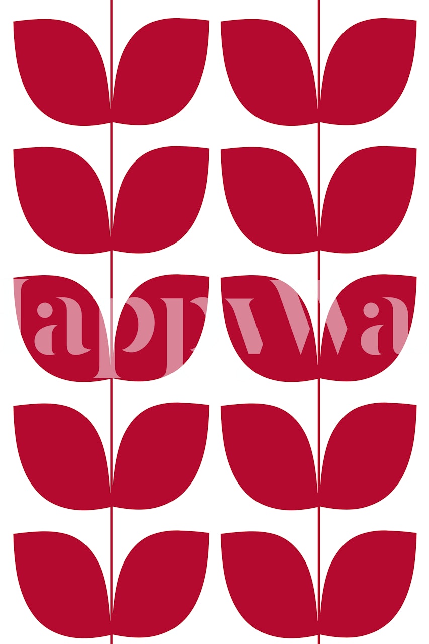 Mid Century Leaves Red wallpaper is made of non-woven material. Each panel is 50 cm wide / 19,7 inches wide