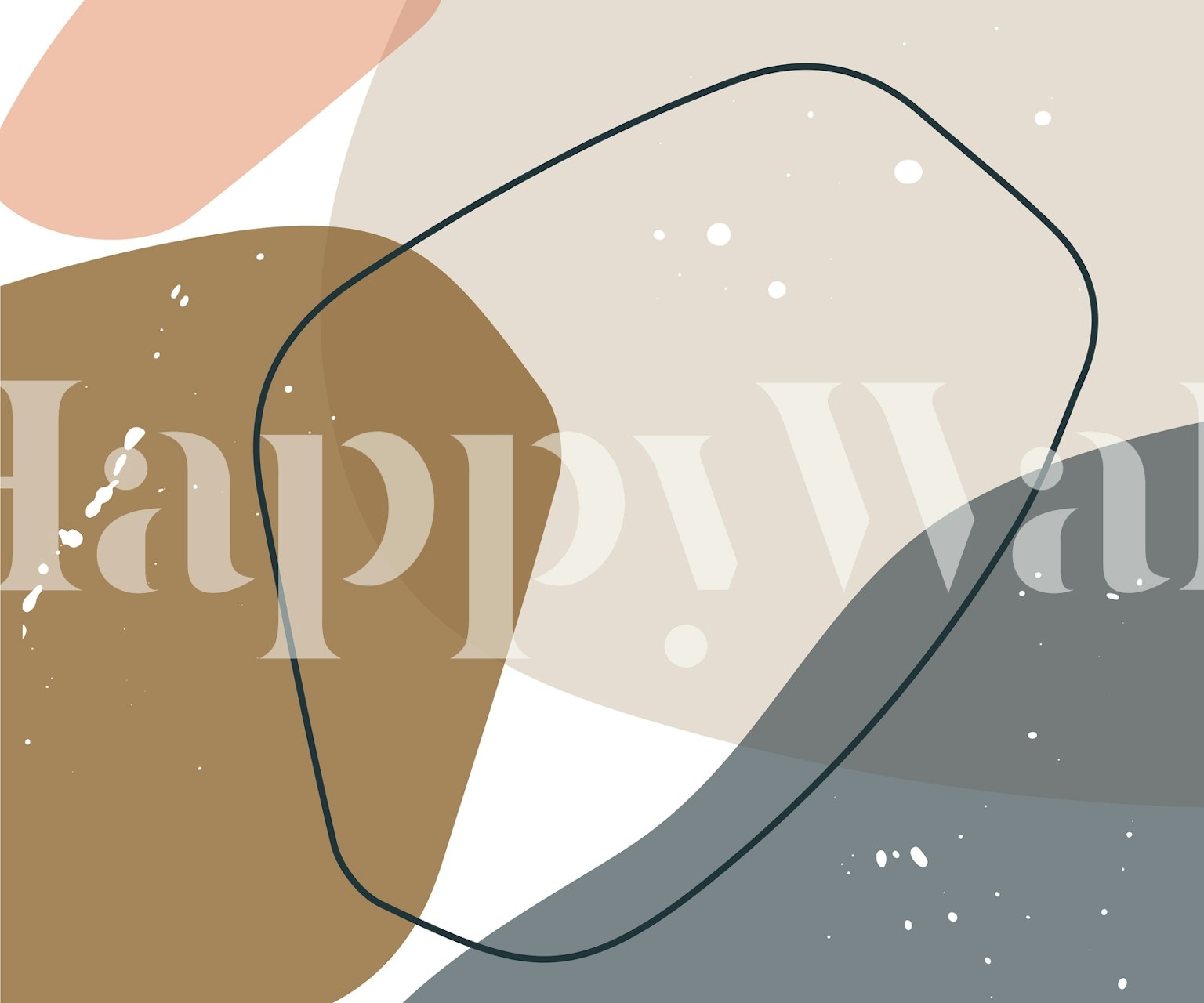 A minimalist abstract wall in neutral tones of grey blue, brown, beige.