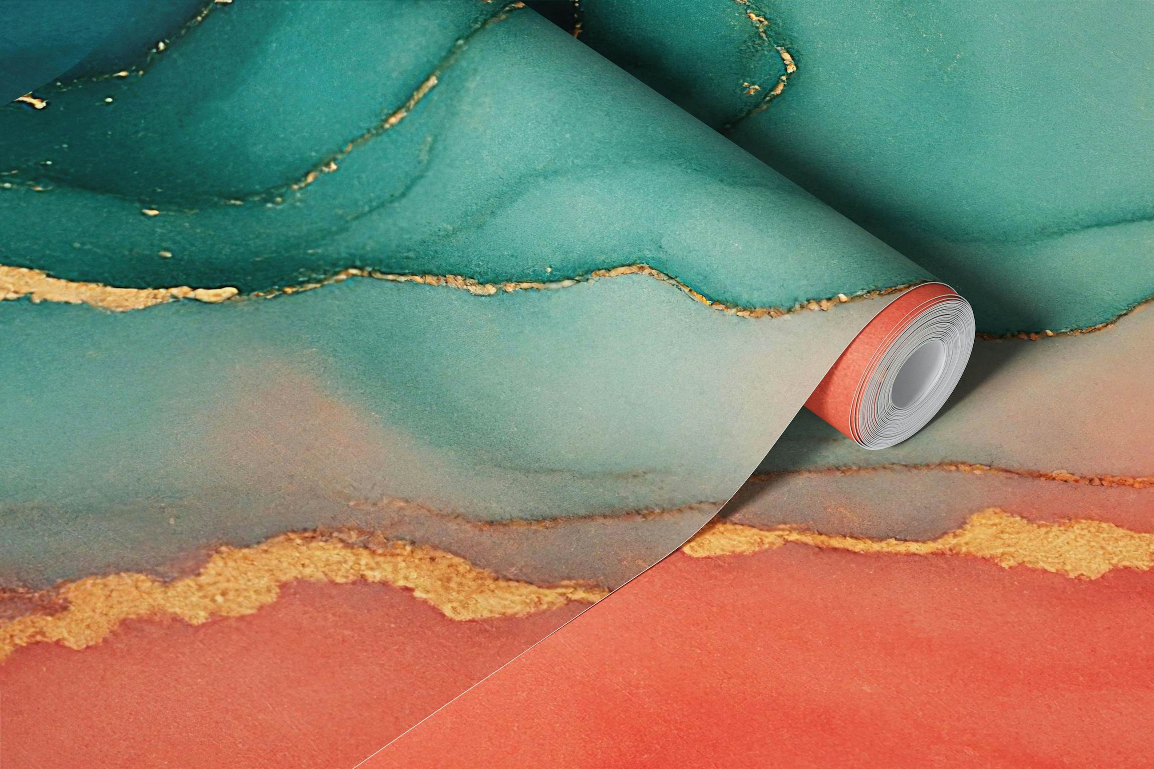 Verander je kamer met dit verbluffende turquoise koraal ontwerp. De levendige mix van turquoise en koraalkleuren, doorweven met gouden accenten, roept een gevoel van oceaanrust en artistieke flair op. Perfect om een vleugje elegantie en beweging aan elke ruimte toe te voegen, brengt deze behang de kalmerende essentie van zee golven naar binnen. Ideaal voor woonkamers, slaapkamers of creatieve ruimtes, nodigt het uit tot een serene maar dynamische sfeer. Ontdek de magie van kust geïnspireerde decoratie met dit betoverende ontwerp.