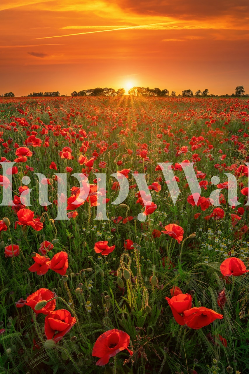 Transformér interiørene med den livlige skjønnheten til Poppies at sunset. Denne fantastiske tapeten fanger de nydelige nyansene av en solnedgang som belyser et felt av slående røde blomster. Perfekt for å bringe et snev av natur innendørs, skaper dette designet en varm og innbydende atmosfære. Ideell for stuer, soverom eller ethvert område som trenger et sprut av farge og ro. Hev dekorasjonen din med denne fengslende scenen og nyt de rolige vibrasjonene den bringer.