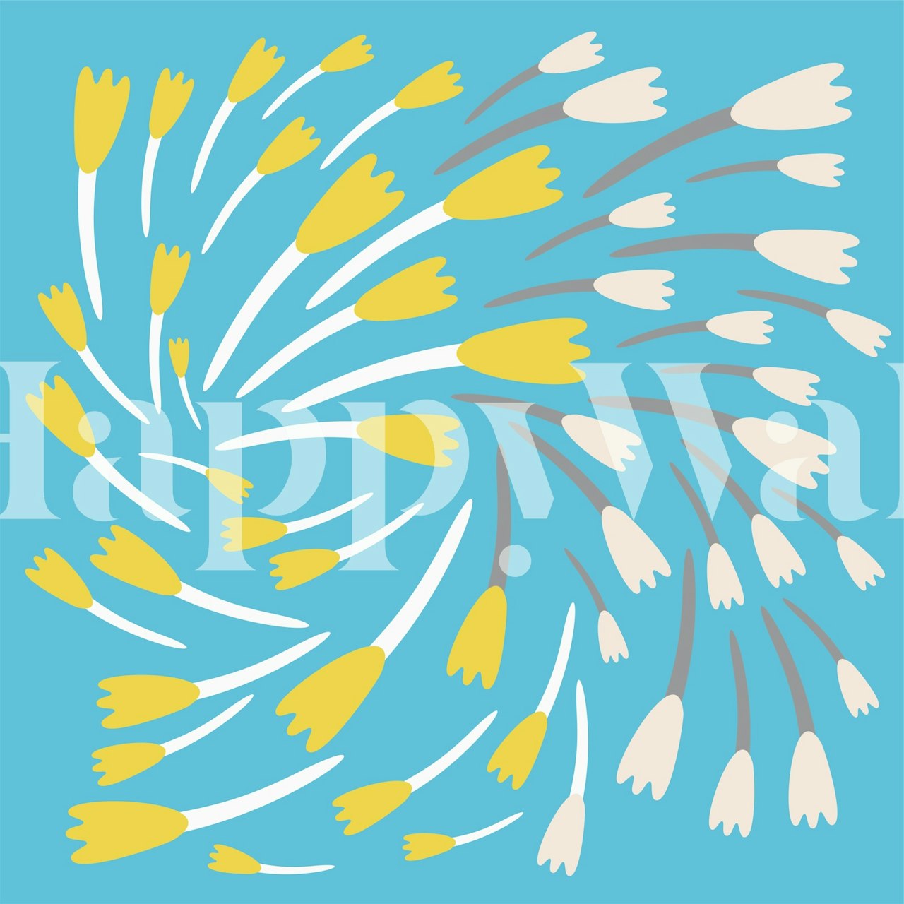 Baby Blue Floral Pattern Tulips papel de parede é feito de material não tecido. Cada painel tem 50 cm de largura/19,7 polegadas de largura
