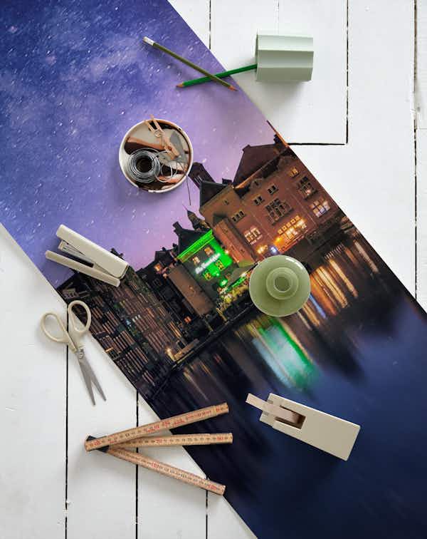 Amsterdam tapet fototapet tillverkas av non-woven. Våderna monteras kant i kant. Vådernas bredd är 50cm.