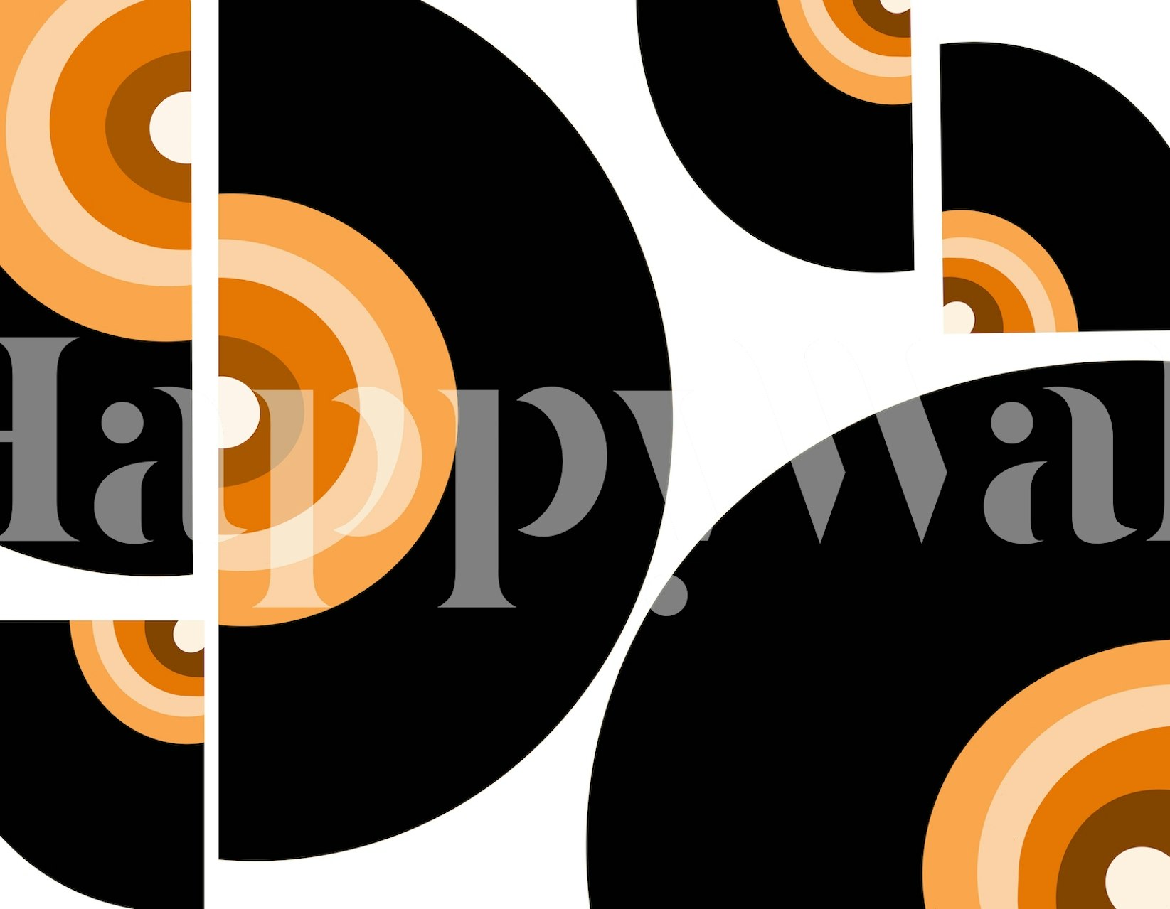 Denna trendiga tapet med målade skivor är ett perfekt komplement till alla dina rum. Låt denna popkonstmålning inspirera dina rum och återuppliva de fantastiska tiderna av hippiefärger och lycka. Det ursprungliga mönsterkollaget är ett unikt tillägg för alla vinylälskare, vilket ger dina rum dessa speciella retrovibbar.